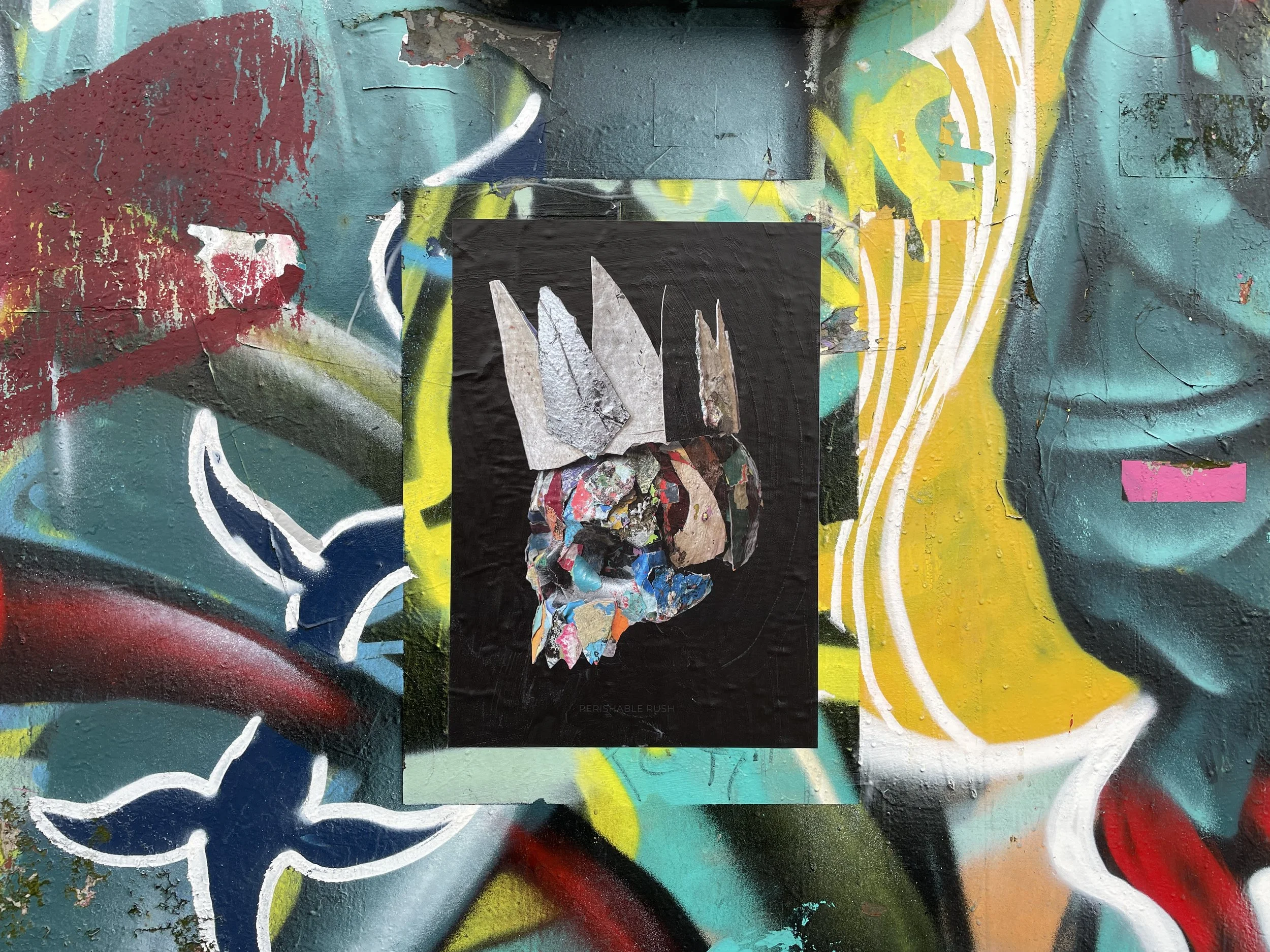 I work both in my studio and in the streets. The streets are my source for materials to build my art from but also a perfect place to put some art back up on the walls. Making the circle complete.